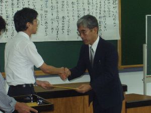 学校より記念品の贈呈