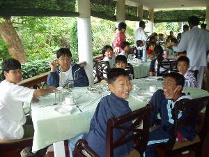 | 出発前、ねむたそう | 山道の途中のレストランで昼食 |