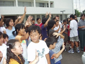 みんなは手をおもいっきりふって