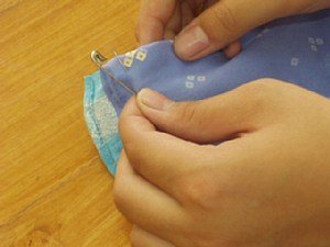 ←(3)(1)や(2)で折った端っこに安全ピンを刺して、おいて下さい。