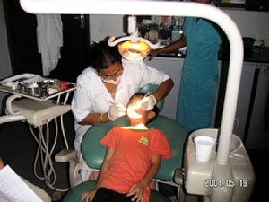 写真は歯科医師の診療所へ行って診てもらっている様子です。