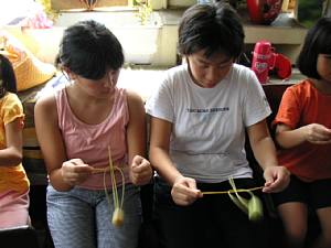 ヤシの葉でヘビをつくりました