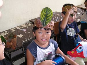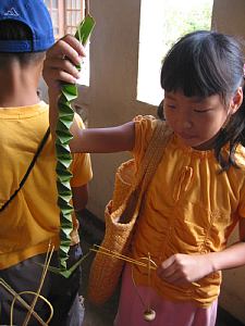 ジャックフルーツの葉を使った冠つくり