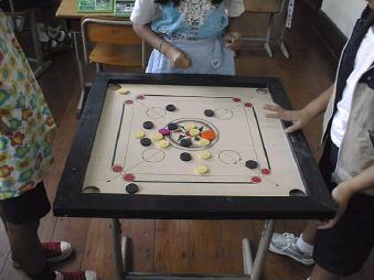 基本的には、ビリヤードとおはじきを足して二で割ったようなゲームです。簡単だけど意外に、「戦略」が大切になるという楽しいゲームです。