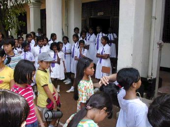 2月29日に現地の学校「スリーワイシャカ校」と交流会を行いました。1〜3年生は、日本の遊びを紹介し、一緒に楽しみました。4〜6年生は、ドッチボールや鬼ごっこをして遊びました。中学部は、ダンスの授業を見学させてもらい一緒に踊ったりもしました。楽しい時間を過ごすとともにスリランカの文化に触れることができました。