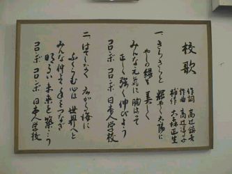| 1 きらきらと 輝く太陽に やしの緑も 美しく みんな元気に 胸はって 正しく強く 伸びよう コロンボ コロンボ 日本人学校 |