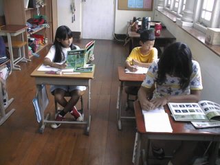 教室は,ふつうの部屋を使っているので,日本の学校の教室よりはずっと小さいです。(写真は,現在の5年生教室です。これでも9つある教室の中で3番目に大きい教室です。) |