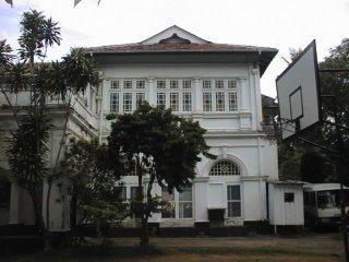 コロンボ日本人学校の校舎は,築80年以上たっており,歴史のある建物です。それだけに老朽化も激しく,雨もりがする事もあります。現在,新校舎建設の準備が進められており,平成14年度には現在の場所から10分ほど離れた場所に新校舎が立てられる予定です。 |